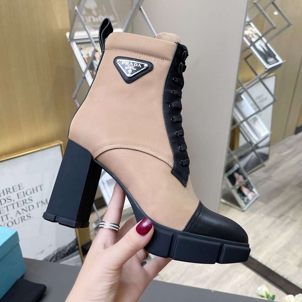 Prada Botas De Martin De Tac n Alto Grueso Con Cordones Suela Gruesa Caballero Cortas Para Mujer Very well made.