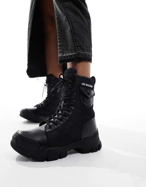 Botas Militares Mujer Piel Negro Plataforma Cordones Very well made.