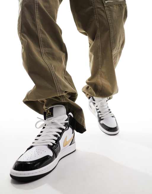 Zapatillas de deporte blancas doradas y negras Air Jordan 1 Mid de Jordan Very well made.