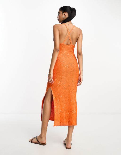 Vestido midi naranja ajustado con acabado iridiscente de Mango Very well made.