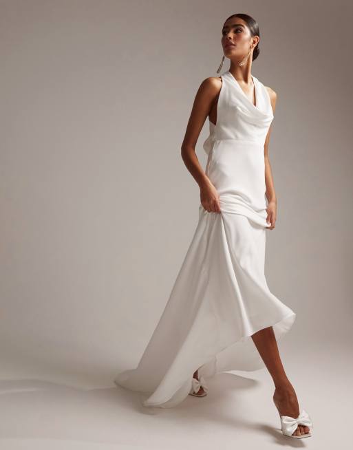 Vestido de novia con cuello halter desbocado de sat n Marlowe de ASOS DESIGN Very well made.