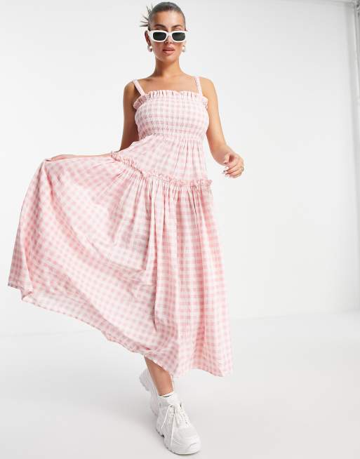 Vestido midi de verano a cuadros vichy rosas y blancos de tirantes con bordes sin rematar de ASOS DESIGN Very well made.