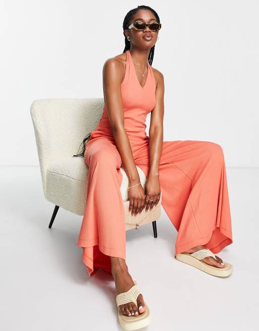 Mono largo color xido de pernera ancha con cuello halter de canal de ASOS DESIGN Very well made.