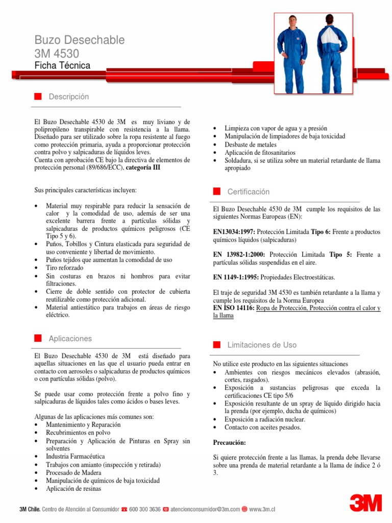 Ficha Tecnica 3m Mameluco Descartable 4530 Segutecnica PDF Very well made.
