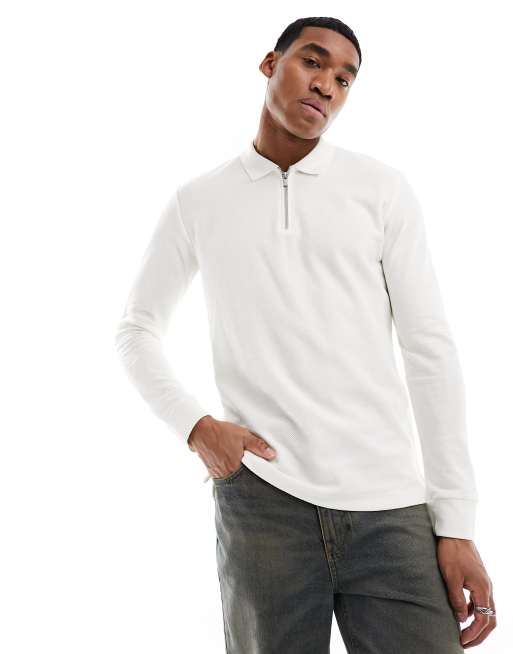 Polo blanco de manga larga con media cremallera de punto de Jack Very well made.