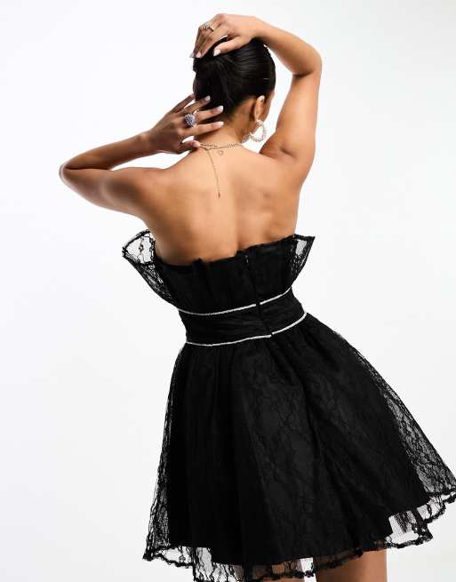 Vestido corto negro palabra de honor con cintura de strass de encaje exclusivo de Collective The Label Very well made.