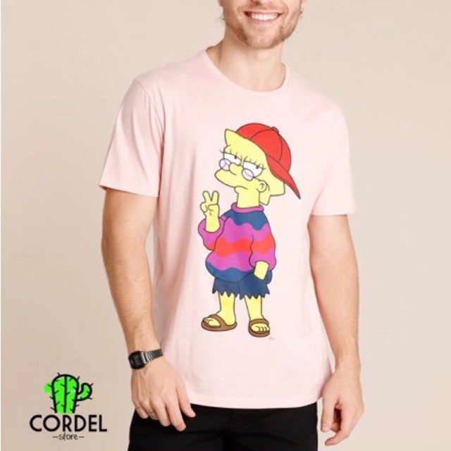 C A Camiseta de Algod o Lisa Simpson Manga Curta Decote Redondo Rosa Very well made.