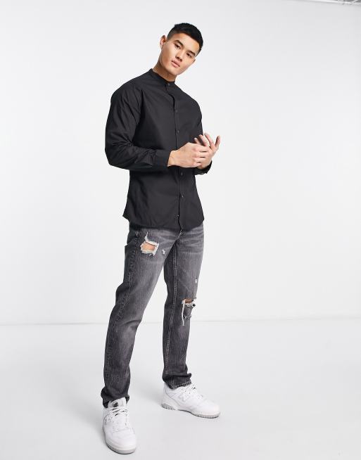 Camisa negra con cuello mao de French Connection Very well made.