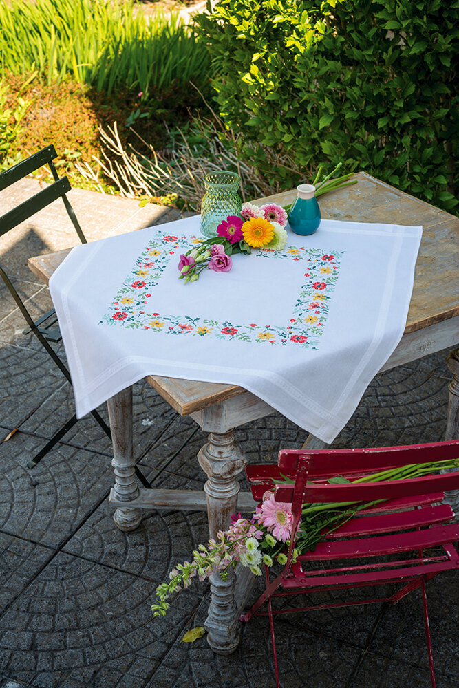 Vervaco Fresh Flowers Tablecloth Cross Stitch Kit 80cm x 80cm Very well made.