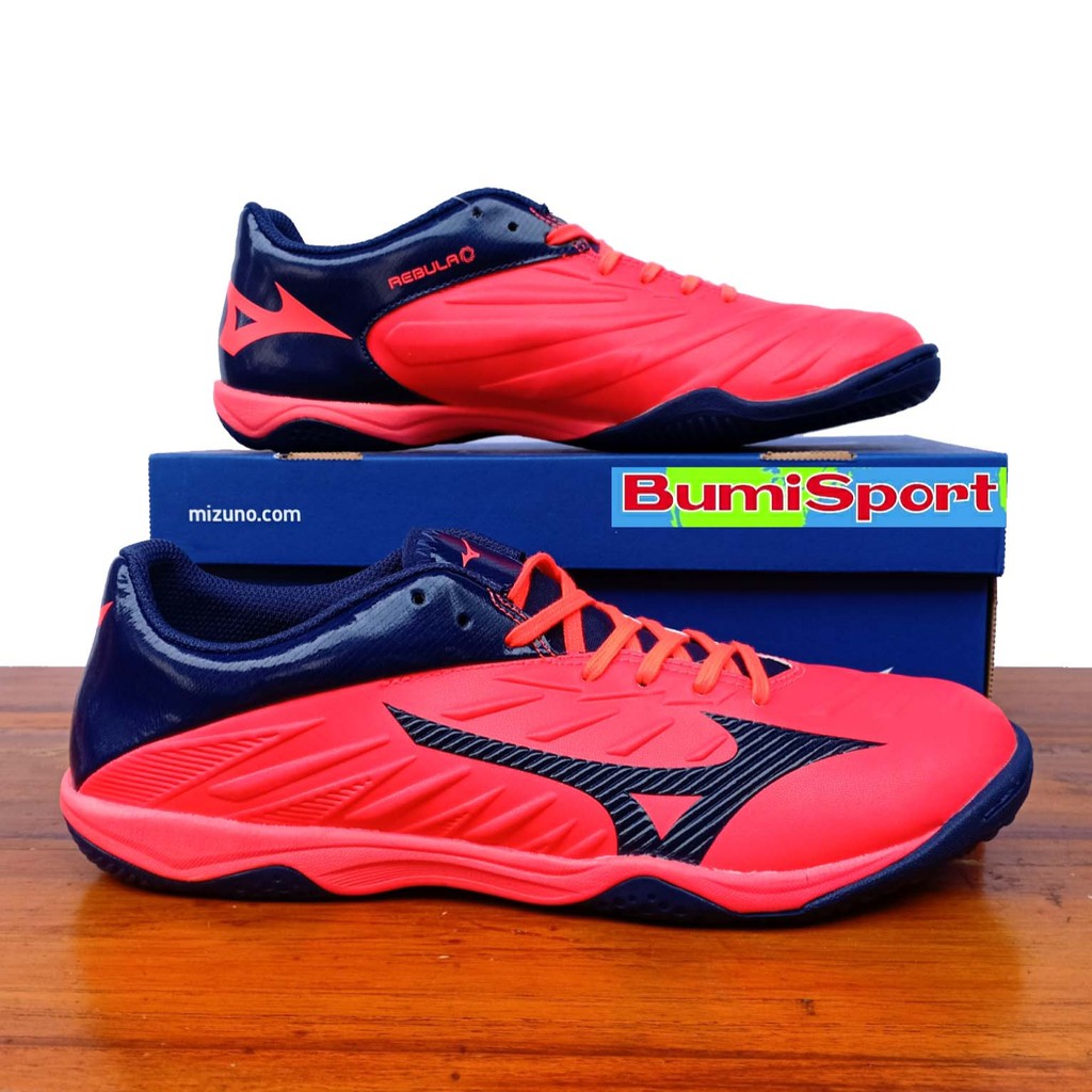 Jual Sepatu Futsal Mizuno Rebula Sala Fiery Coral Navy Q1GA184114 Very well made.
