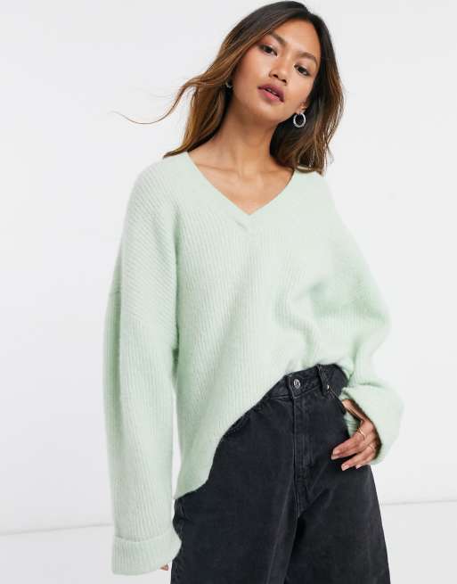 Other Stories Wollen oversized trui met V hals in groen Very well made.