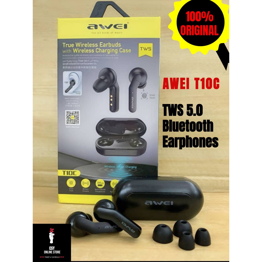 Awei T10C Wireless Earphones Qi Wireless Charging True Touch Very well made.