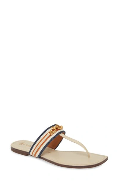 Tory Burch Jessa Thong Sandals Calf Leather Dulce De Leche Chain Very well made.