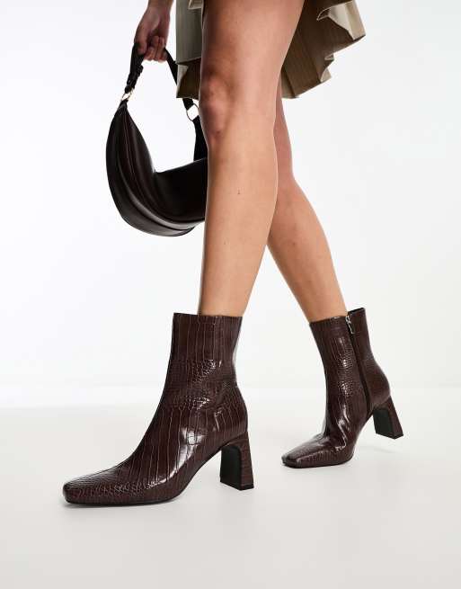Glamorous mid heel ankle boots in brown croc ASOS Very well made.