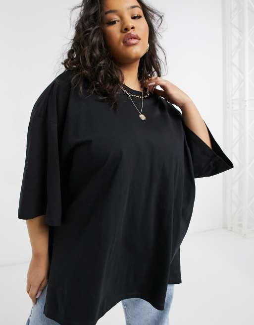 ASOS DESIGN Curve super oversized T shirt with side slits in black Very well made.