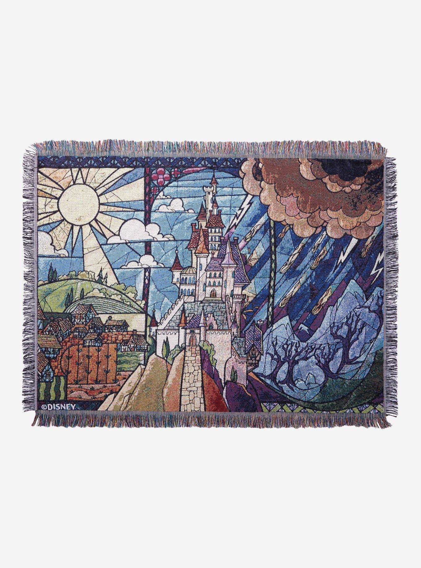 Disney Beauty and the Beast Stained Glass Castle Tapestry Throw Very well made.