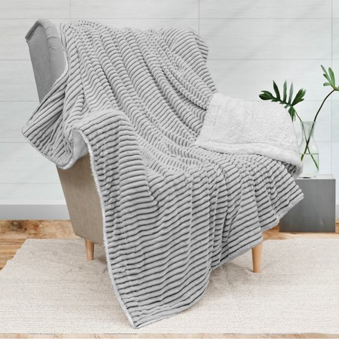 Pavilia Soft Thick Fleece Flannel Ribbed Striped Throw Blanket Very well made.