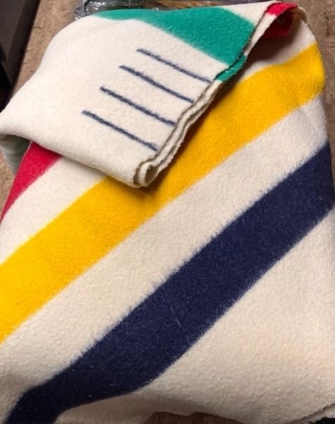 Blanket Hudson Bay 4 Points White with Multi Stripes or Capote Very well made.