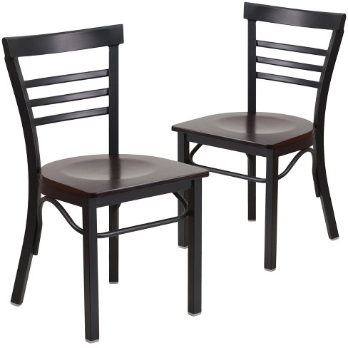 Emma and Oliver 2 Pack Black Three Slat Ladder Back Metal Restaurant Chair Walnut Wood Seat Very well made.