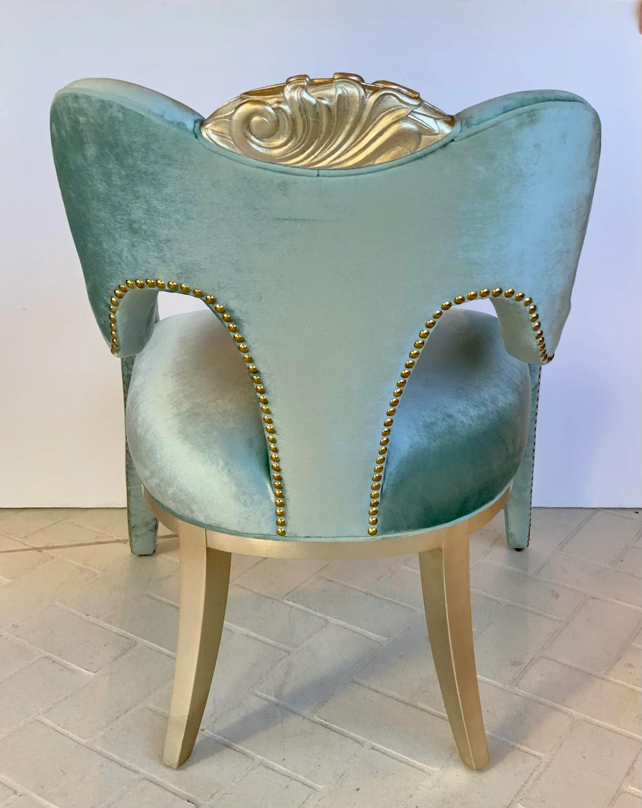 Caracole Modern Glam Turquoise Velvet Fontainebleau Arm Chair Very well made.