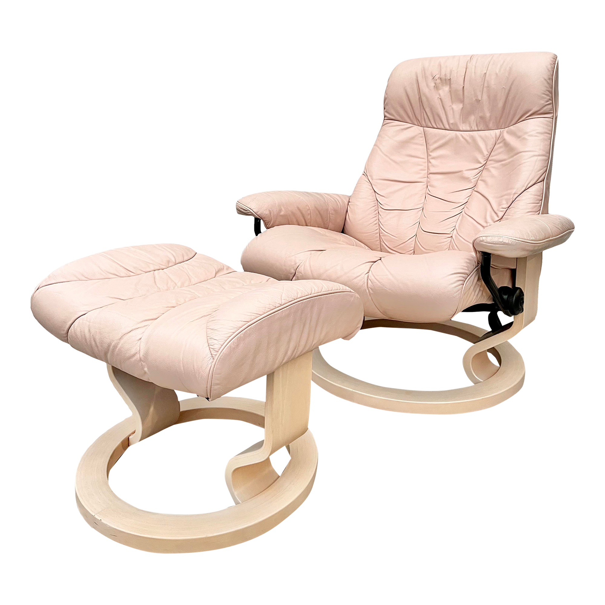 Vintage Pink Leather Lounge Chair and Ottoman Set by Ekornes Stressless Very well made.