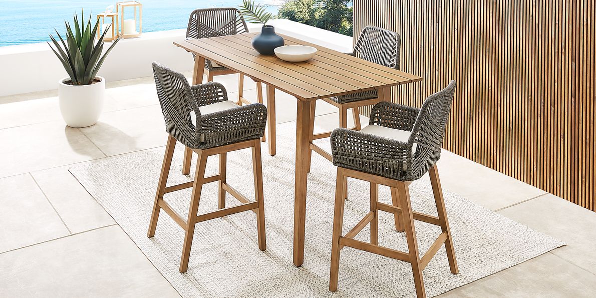 Tessere 5 Pc Natural Light Wood Gray Outdoor Dining Set With Very well made.