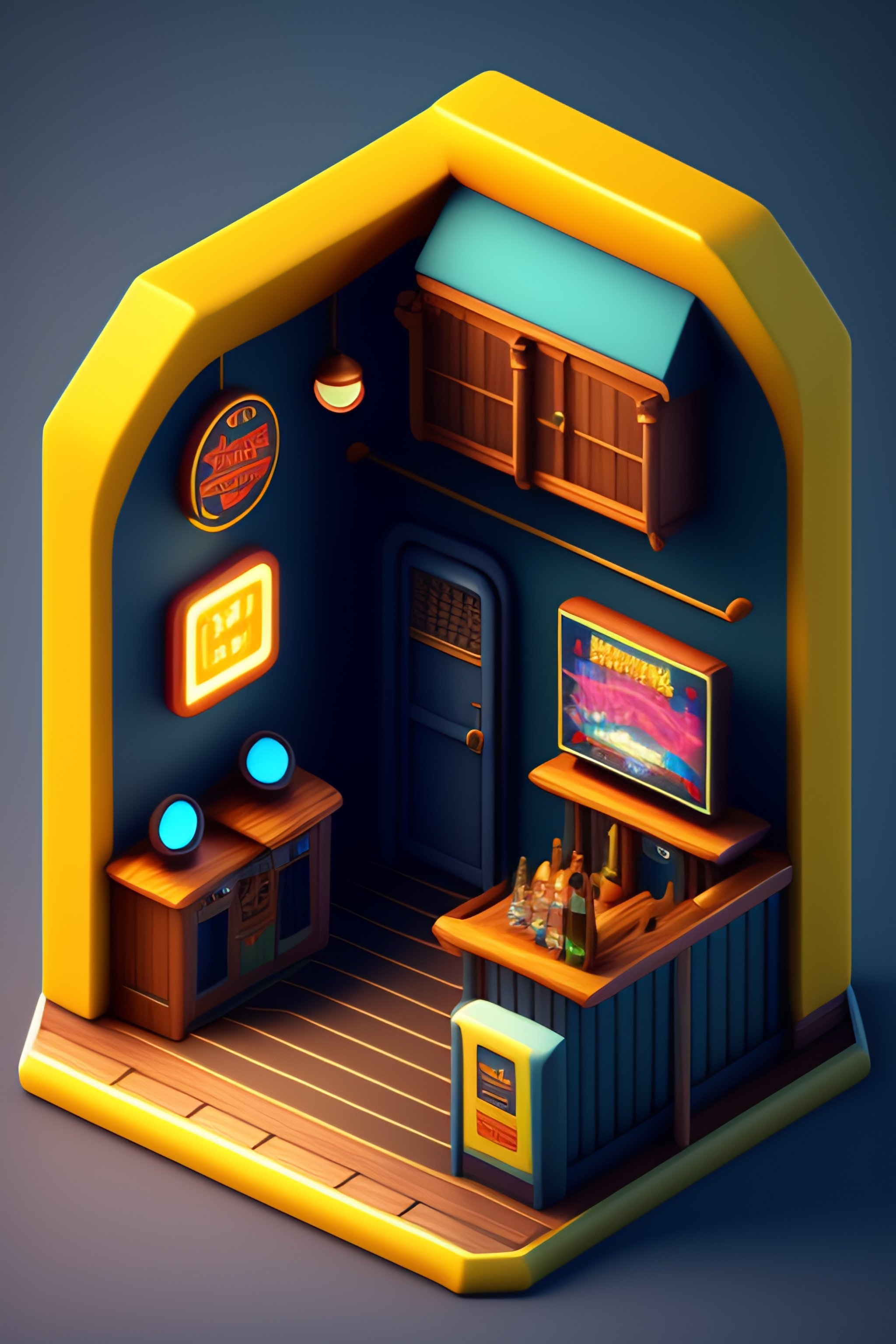 Lexica Detailed isometric bar video games very cozy nostalgia Very well made.
