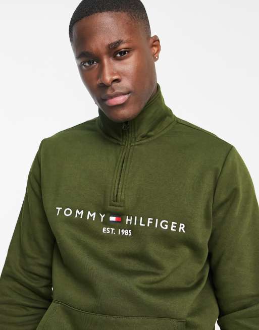 Tommy Hilfiger Sweat avec logo drapeau brod et col zipp Vert Very well made.