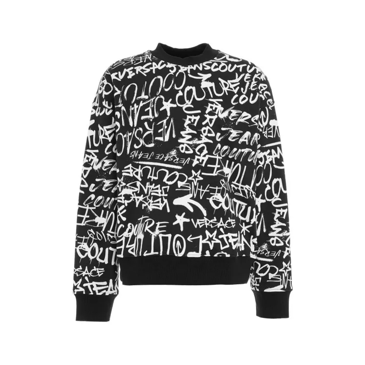 Versace Sweater With Logo Print Black Pull Very well made.