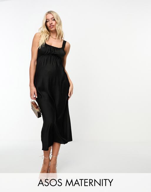 ASOS DESIGN Maternity Robe nuisette babydoll mi longue en satin fronces Noir Very well made.