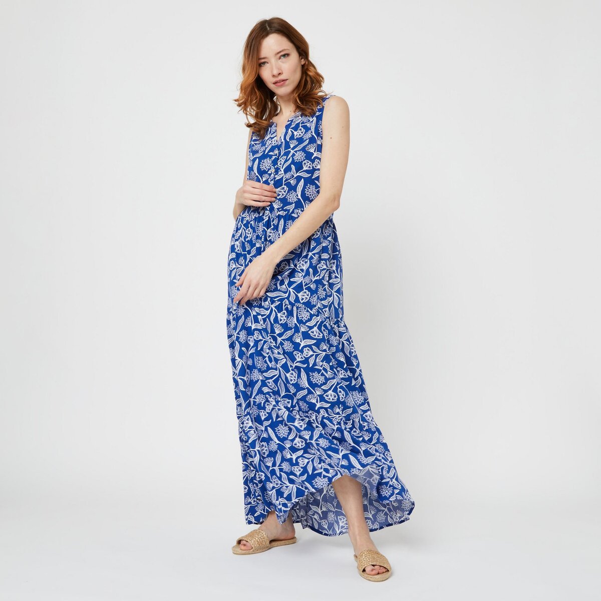 Robe longue vas e col V Robes grandes tailles basic pas cher pour femme Couleur Bleu marine Very well made.