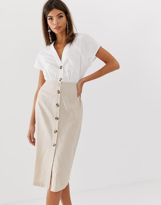 ASOS DESIGN Robe mi longue boutonn e en coton et lin m lang Very well made.