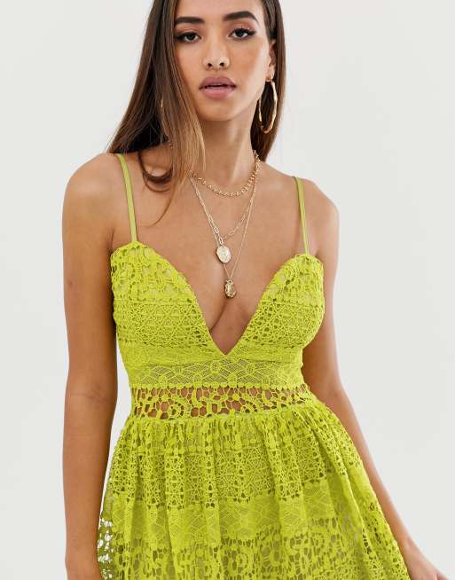 Missguided strappy lace tiered midi dress in yellow Very well made.