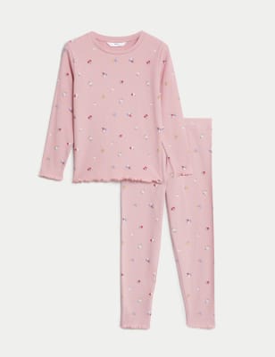 Cotton Rich Floral Ribbed Pyjamas 1 8 Yrs Very well made.