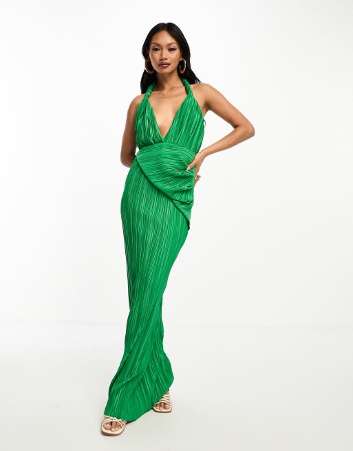 ASOS DESIGN Robe pliss e longue d collet plongeant avec dos b nitier chancr Vert Very well made.
