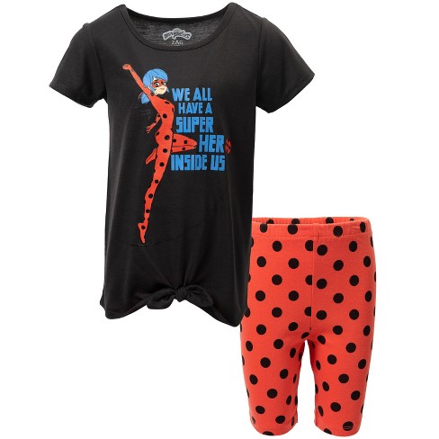 Miraculous Ladybug Little Girls Knotted Pullover Graphic T Shirt Shorts Black Red 4 Very well made.