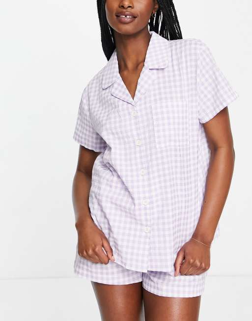 Loungeable button up short pajama set in lilac gingham plaid ASOS Very well made.