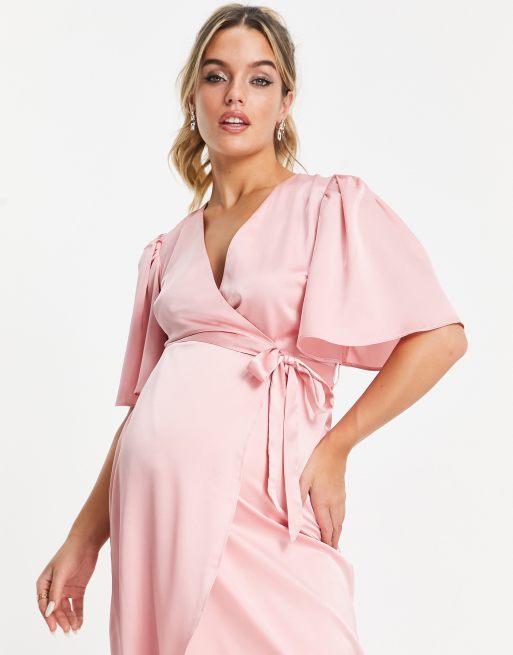 Liquorish Robe cache c ur de grossesse longueur mollet en satin pour demoiselle d honneur Rose pastel Very well made.