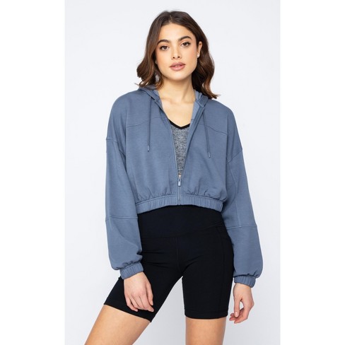 90 Degree By Reflex Women s Cloud Plush Front Zip Cropped Hoodie Top Grisaille XX Large Very well made.