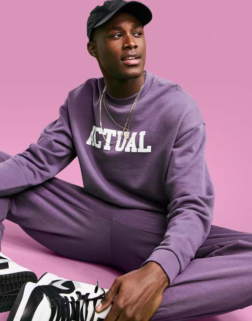 ASOS Actual oversized sweatshirt in purple with front varsity logo print Very well made.