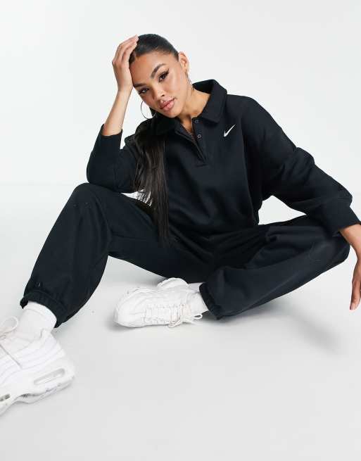 Nike Phoenix Fleece cropped polo sweatshirt in black Very well made.