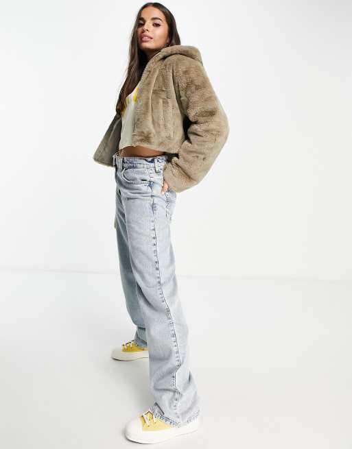 ASOS DESIGN cropped hooded faux fur jacket in light khaki ASOS Very well made.