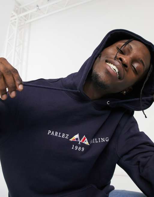 Parlez Jetty embroidered hoodie in navy Very well made.