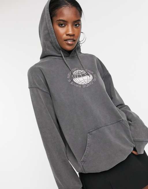New Girl Order oversized hoodie with diamante fron logo and back graphic in washed grey Very well made.