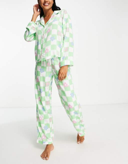 ASOS DESIGN modal floral checkerboard long sleeve shirt pants Very well made.