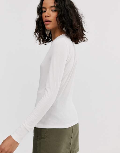 Weekday fine ribbed long sleeve t shirt in off white ASOS Very well made.