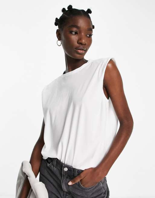 French Connection shoulder pad crepe tank top in white ASOS Very well made.