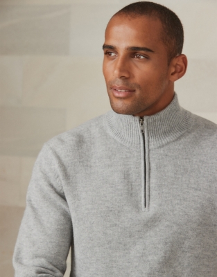 Light Grey Melange Classic Fit Half Zip Cashmere Jumper Very well made.