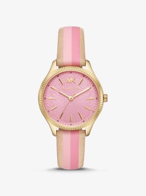 Lexington Gold Tone and Striped Leather Watch Michael Kors Very well made.