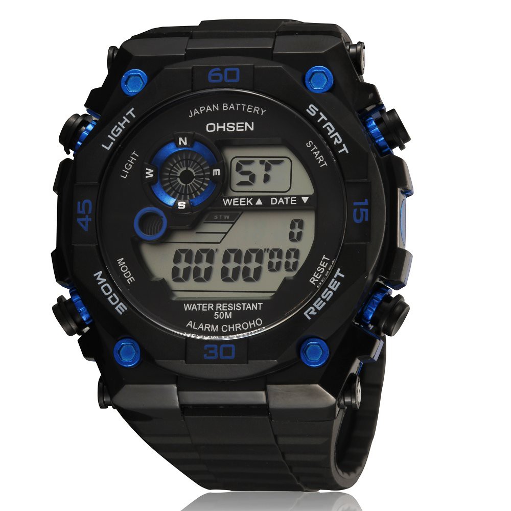 Ohsen Digital Led Men Watches 50m Diving Rubber Strap Stopwatch Very well made.